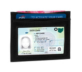 This card holder has 3 slots with 1 photo ID slot Height: 3.15”(cm); length: 3.93 “ (10.2 cm) Made in the USA. Leather care and instructions are included with this purchase.