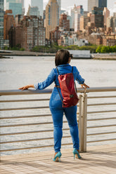 Women's Genuine Leather Skinny Leather Sack pack worn as a Backpack.